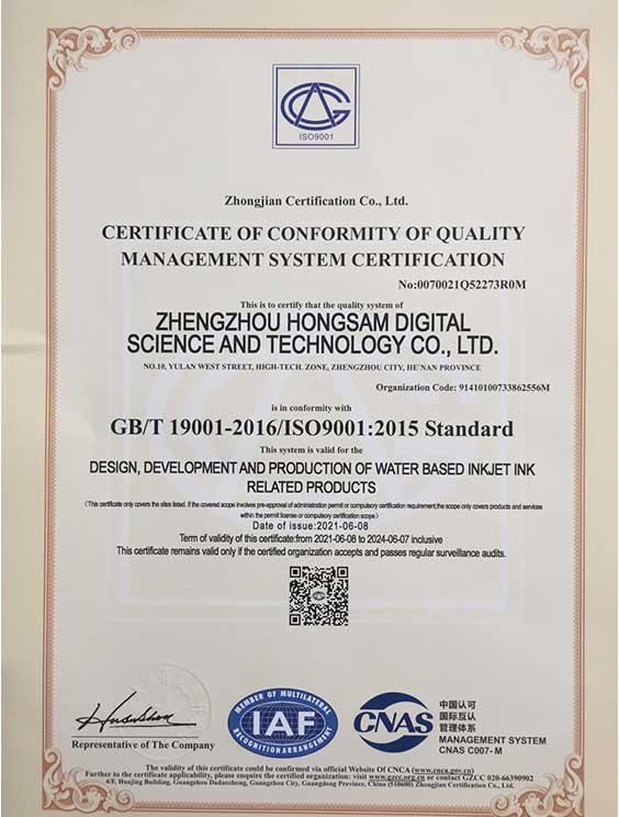 2、鸿盛数码是中国轻工业行业标准:纺织品印染喷墨第2部分《分散染料墨水》标准第一起草单位;