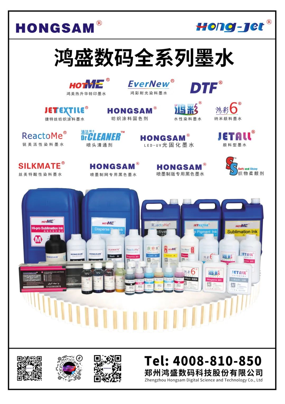 本次展会,鸿盛数码(展位号:5.2H-A1060)将展示旗下全系列墨水:数码印花、数码影像、数码印刷,以及HJ-1808L乳胶打印机、JETALL®水性环保乳胶墨水打印方案,涵盖了墨水、设备及打印方案,可以满足不同客户的不同需求!